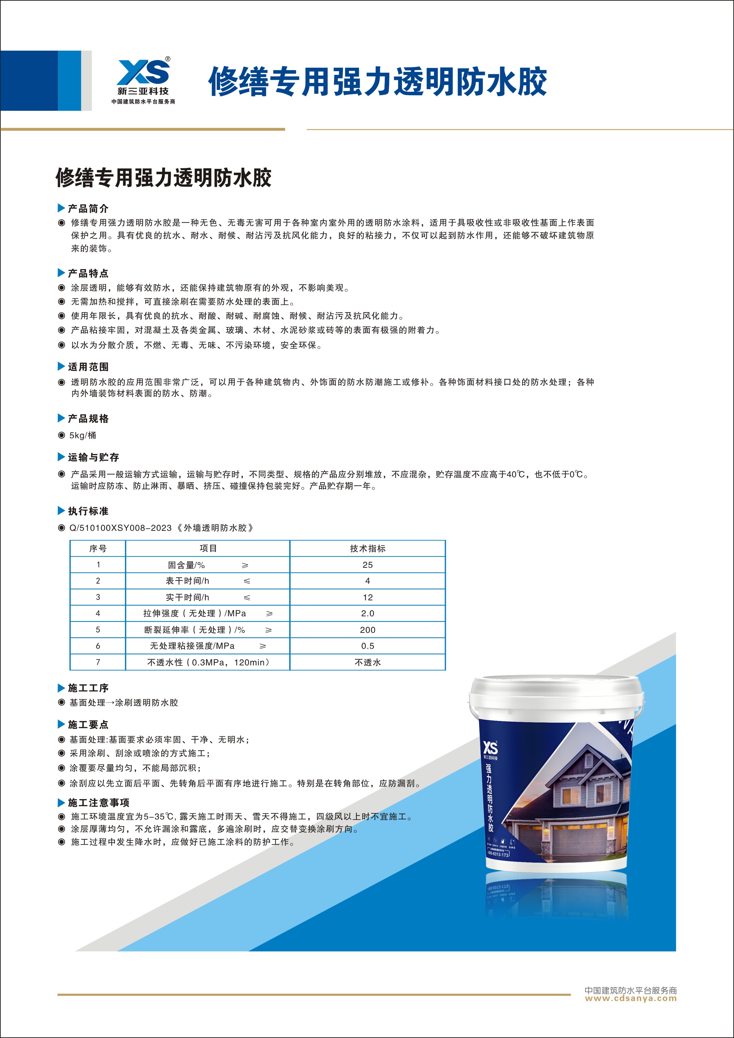 產(chǎn)品簡介: 修繕專用強(qiáng)力透明防水膠是一種無色、無毒無害可用于各種室內(nèi)室外用的透明防水涂料,適用于具吸收性或非吸收性基面上作表面保護(hù)之用。具有優(yōu)良的抗水、耐水、耐候、耐沾污及抗風(fēng)化能力,良好的粘接力,不僅可以起到防水作用,還能夠不破壞建筑物原來的裝飾。 規(guī)格:5kg/桶